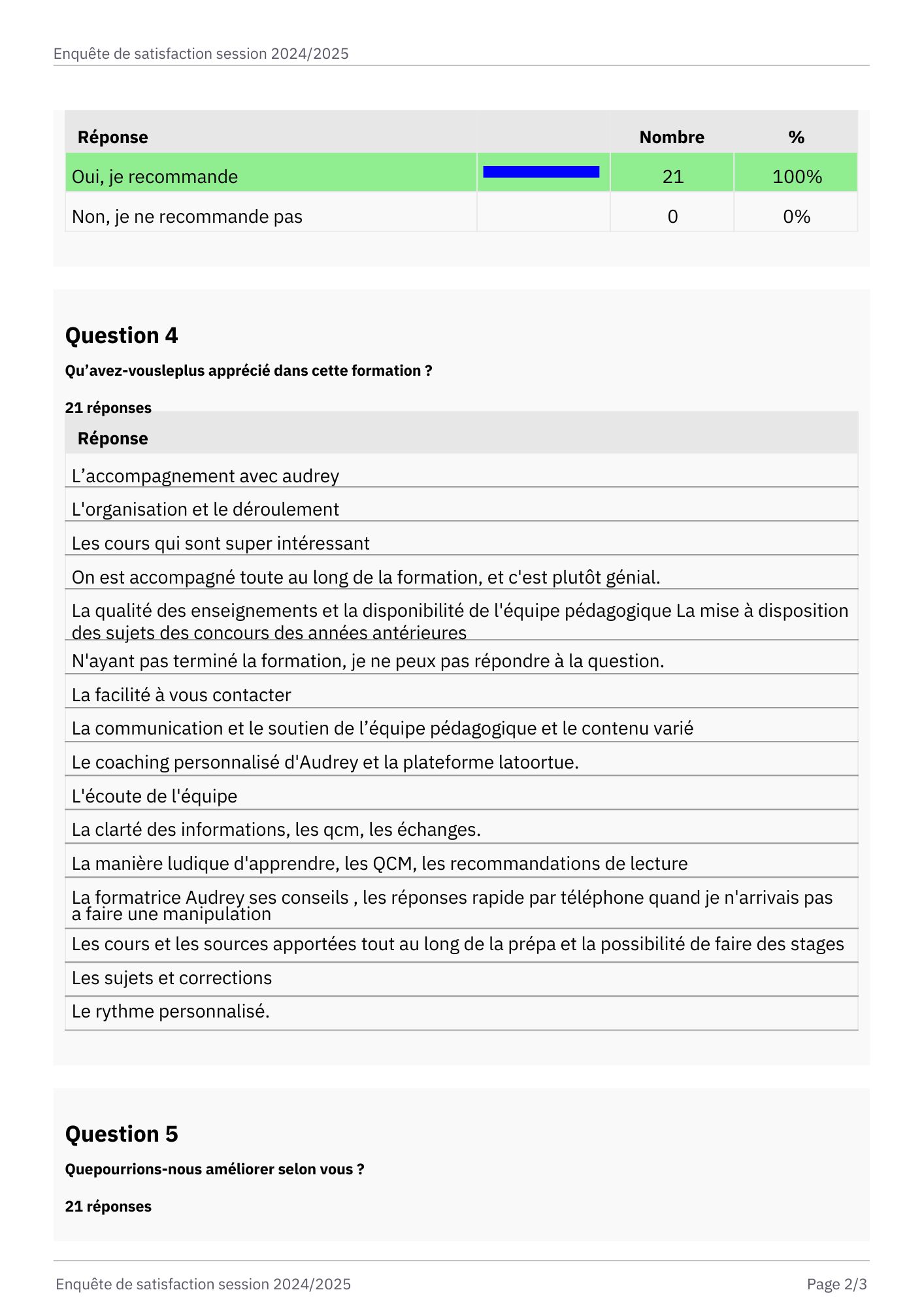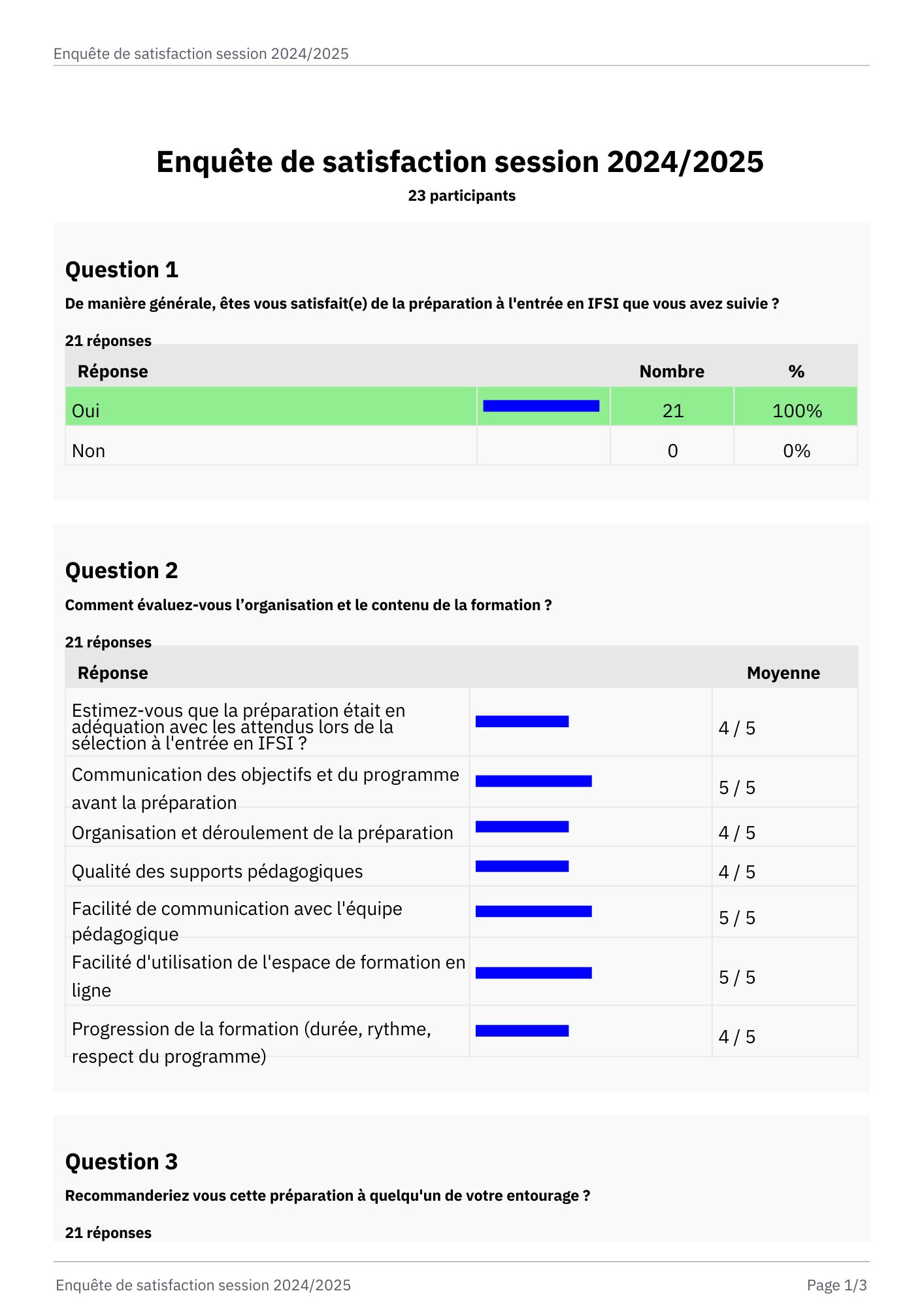 Résultats de satisfaction — Prépas IFSI (Session 2024-2025)